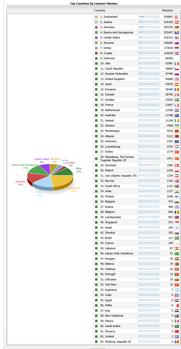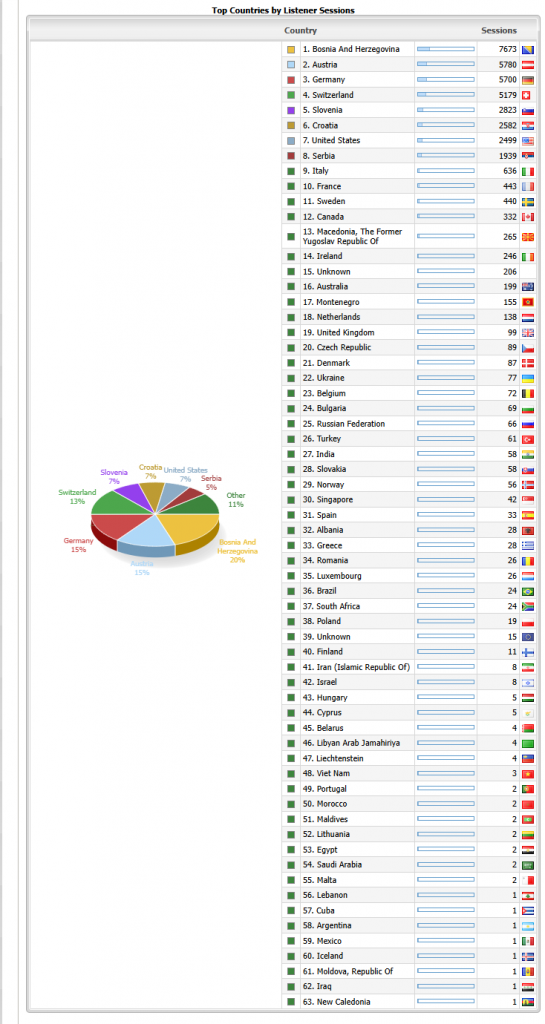 U periodu od mjesec dana predizborne kampanje, naš program je pratilo 6.362 .539 slušalaca (toliko puta je kliknuto na neki od playera na kojima sviramo) i to je statistika samo preko interneta, gdje nas slušaju ljudi iz 63 zemlje sveta. To je oko milion i po minuta slušanja, odnosno oko 116 000 sati našeg programa.