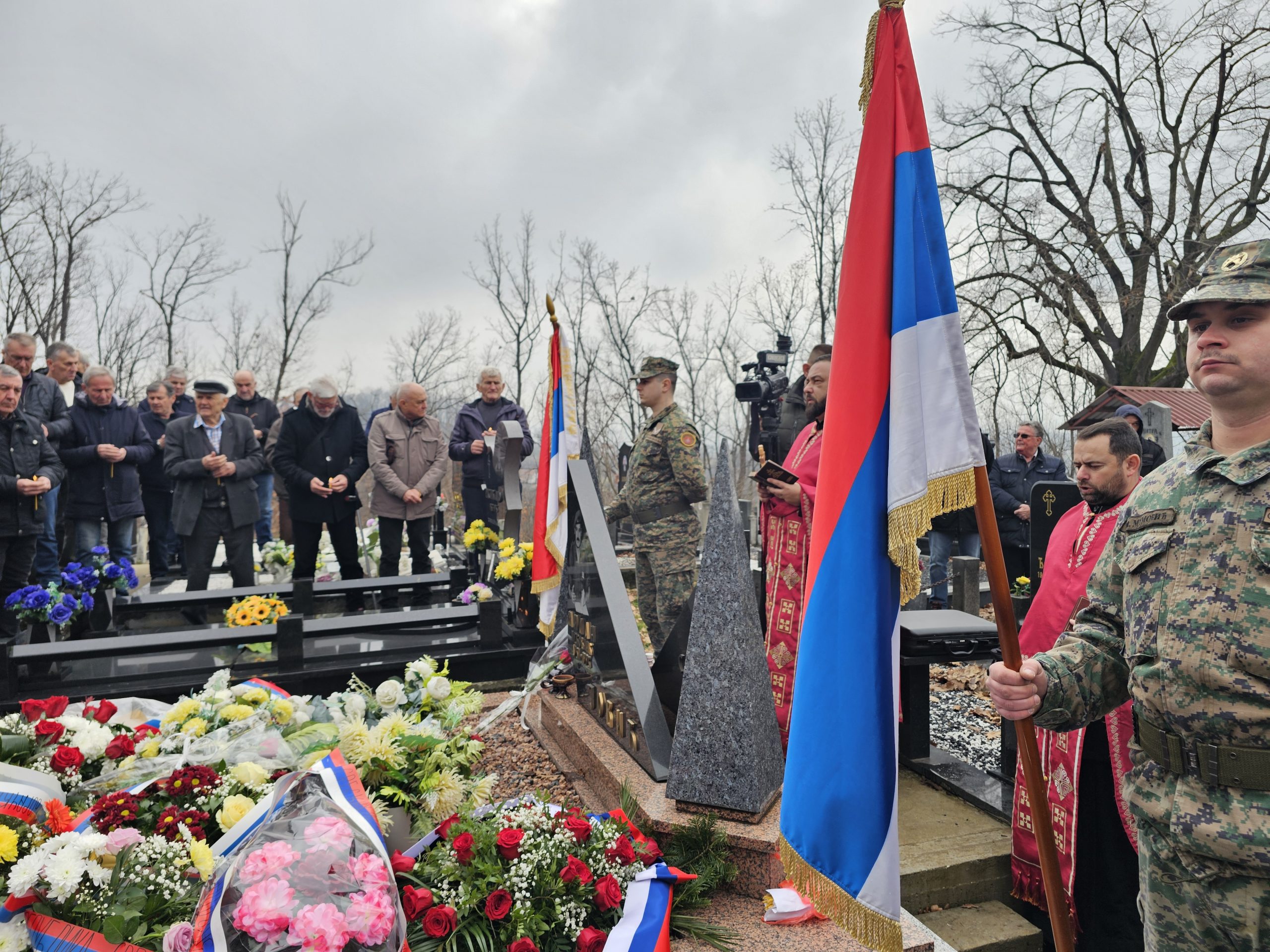 Na groblju “Gaj”, gdje je sahranjen pukovnik Jović, okupili su se porodica, saborci, prijatelji i poštovaoci lika i djela ovog srpskog junaka da bi mu odali počast.